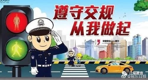 1.出行注意遵守交通規(guī)則,過馬路不闖紅燈、不逆行、不騎車載人、不并排行走。